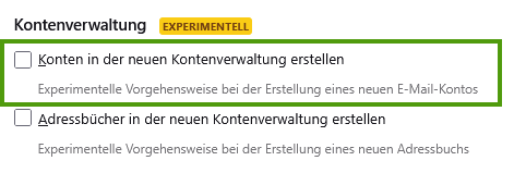 Das klappt derzeit allerdings nicht mit neuen ‚experimentellen‘ Einstellungen in Thunderbird – man sieht dann nur eine endlose Ladeanzeige.