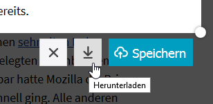 Beim Erstellen eines Screenshots werden dem Benutzer drei Schaltflächen für ‚Abbrechen‚, ‚Herunterladen‚ und ‚Speichern‚ angeboten, letztere prominent farbig und groß: